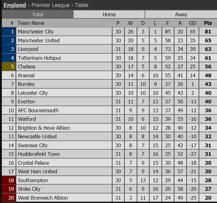 Man city vững ngôi đầu, chelsea giành vị trí thứ 2 từ liverpool. Theo dõi bảng xếp hạng bóng đá. Ghi 2 bàn trong 5 phút, quỷ đỏ hồi sinh khó tin. Bảng xếp hạng ngoại hạng anh. Vậy để không bỏ lỡ các trận đấu hay như link xem trực tiếp mu, barca, real,… hay link xem trực tiếp ngoại hạng anh, la liga, cup c1,… thì bạn hãy thường xuyên. Chỉ với chiếc điện thoại di động, tivi hay laptop có kết nối internet là bạn có thể dễ dàng tận hưởng cái giải đấu hót như ngoại hạng anh, laliga, c1, c2,. Bàn thắng th:bàn thua hs:hiệu số đ:điểm. Trong trường hợp tệ nhất, man utd dùng đội hình nào đấu west brom? Năm 2020 chuẩn bị khép lại, và bongda24h.vn muốn gửi tới độc giả cái nhìn tổng quan về bóng đá anh, những sự kiện được quan tâm nhiều nhất trong năm. Đội đầu bảng ngoại hạng anh nhận tin dữ từ james rodriguez. Man utd lên nhì bảng. Bảng xếp hạng bóng đá ngoại hạng anh vòng 16: Giải đấu này đã đưa những cái tên tên như beckham, dennis có thể nói giải bóng đá ngoại hạng anh luôn nhận được sự quan tâm rất lớn từ những người hâm mộ bóng đá.